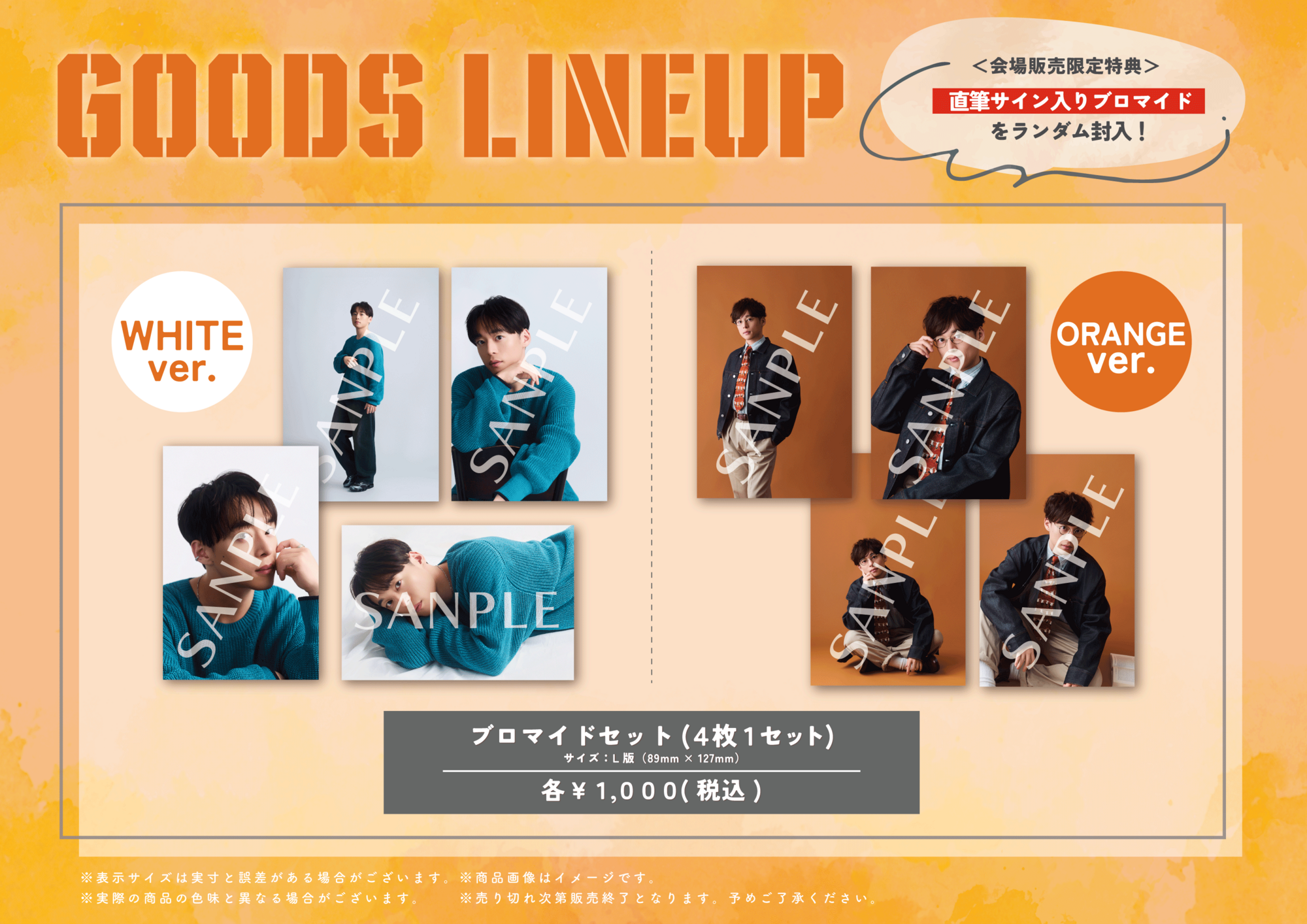 爽やかで大人な印象の「WHITE ver.」・開催時期に合わせて秋らしい装いできめた「ORANGE ver.」と、それぞれイメージの異なるブロマイドになっております!